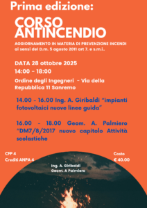 Vi informiamo che sono aperte le iscrizioni ai corsi di aggiornamento in materia di prevenzione incendi al seguente link: https://portaleservizi.cnappc.it/